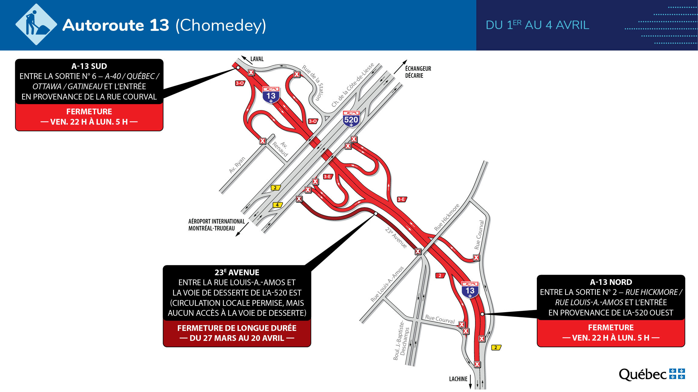 Prévoyez vos déplacements : fermeture de l’autoroute 13 du 1er au 4 avril 2022