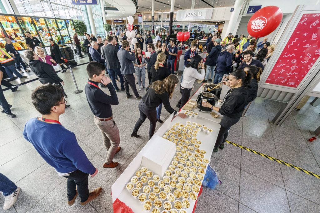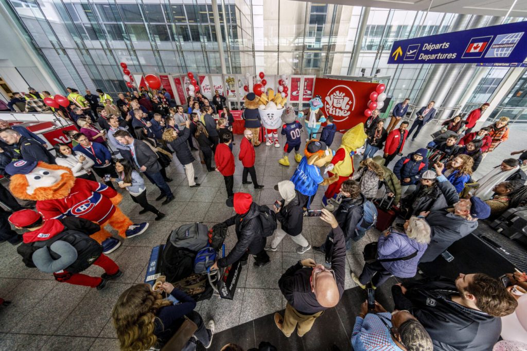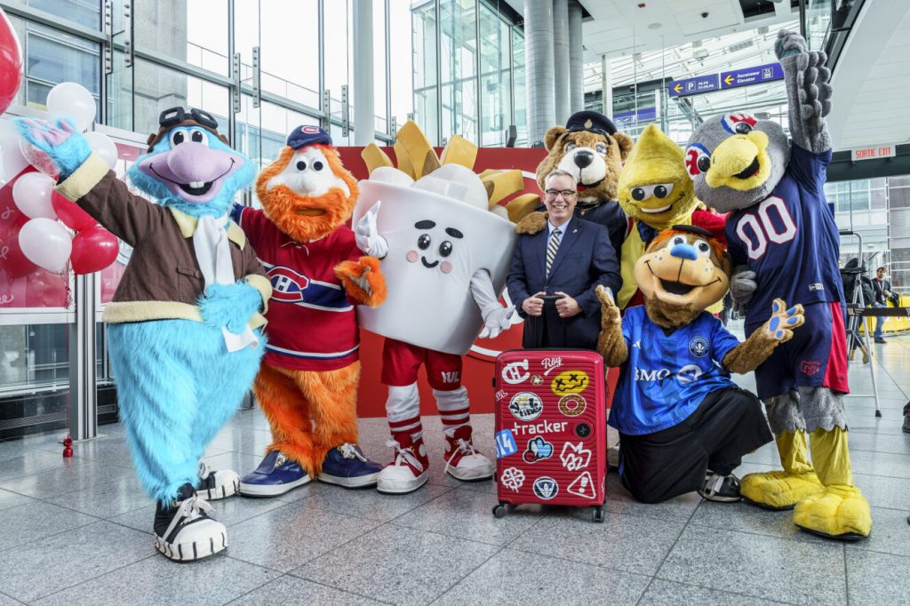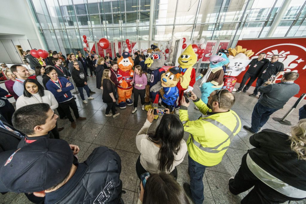 Le 1er mars dernier, nous avons accueilli notre nouvelle collègue YULtine, la toute première mascotte de YUL. Collègues et passagers étaient de la partie pour souhaiter à YULtine une chaleureuse bienvenue et déguster une poutine … à son honneur ! Ses collègues mascottes de différentes organisations étaient également présents pour témoigner de ce moment important et lui souhaiter bonne chance dans ses nouvelles fonctions.