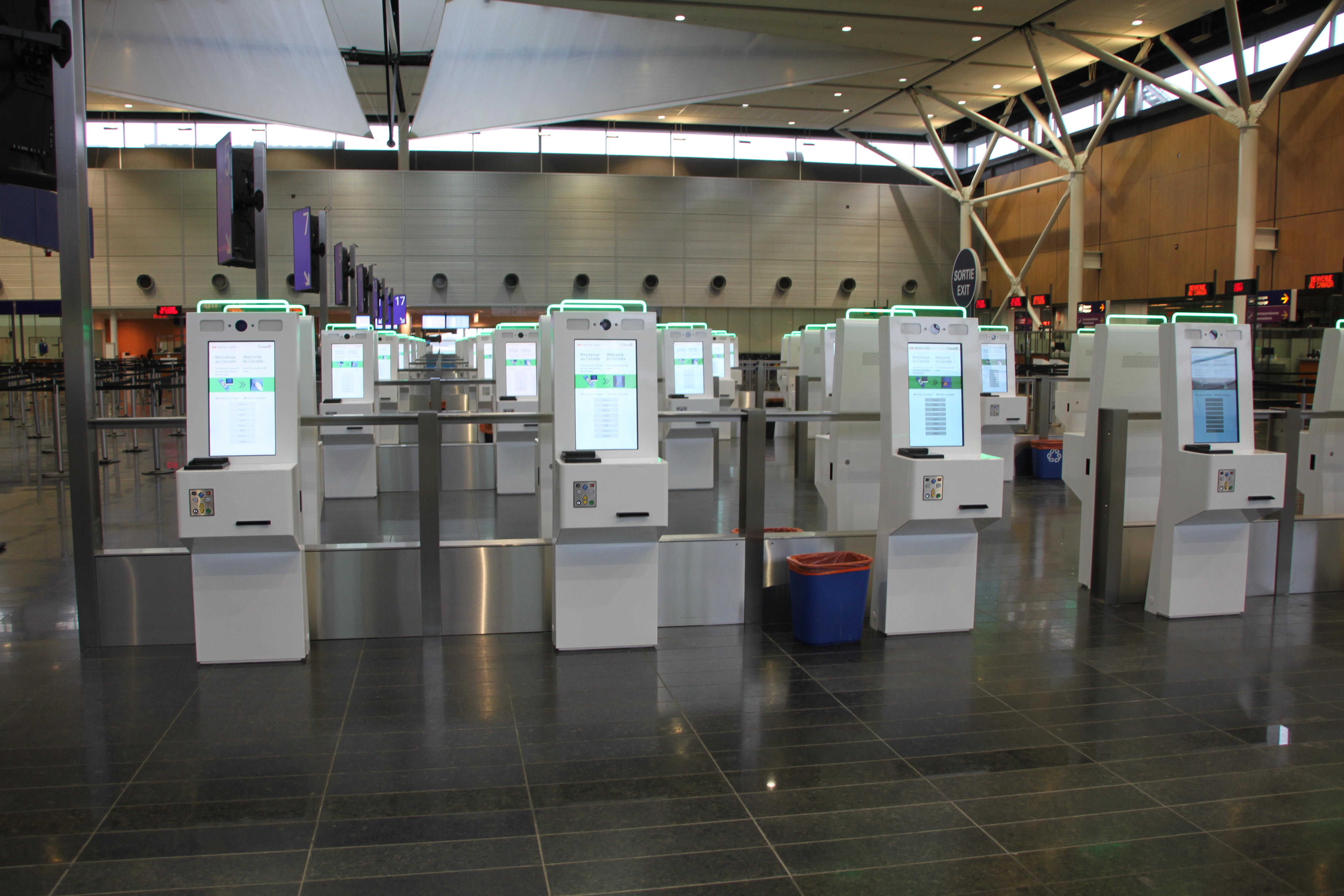 100 bornes d’inspection primaire (BIP) maintenant en service au contrôle frontalier à Montréal-Trudeau
