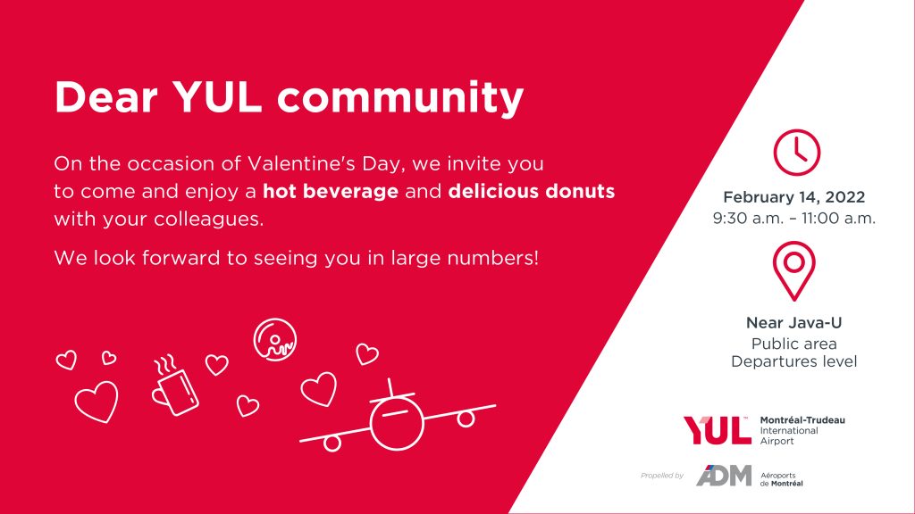 You are therefore warmly invited, on February 14, to come share a hot beverage and donuts with your colleagues from the YUL community.